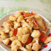 菜花、胡萝卜、油、盐、蚝油、葱、味精、花椒粉。