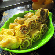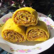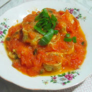 鸡肉蛋卷、西红柿、油、花椒粉、白糖、葱。