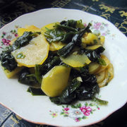 土豆、海带、油、盐、花椒粉、酱油、葱、鸡精、蒜。