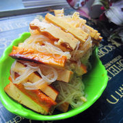 素鸡、粉丝、香油、盐、海鲜酱油、白糖、陈醋、蒜、鸡精。