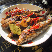 鲅鱼、油、盐、酱油、料酒、花椒粉、干红辣椒、八角、桂皮、香叶、葱、姜、蒜、鸡精。