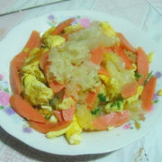 鸡蛋、火腿肠、银耳、油、盐、料酒、葱、鸡精、花椒粉。