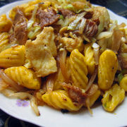 面粉、大头菜、猪肉、南瓜、油、酱油、葱、姜、料酒、花椒粉。