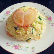 剩饭、黄瓜、鸡蛋、圆白菜、西红柿、葱、盐。