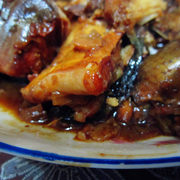 茄子、酱油、醋、白糖、盐、淀粉、蚝油。