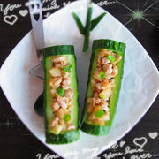虾、黄瓜、猪肉、蒜子、生姜、香葱、酱油、白醋。