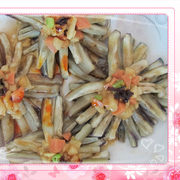 茄子、火腿肠、荸荠、葱、盐、生抽、香麻油。