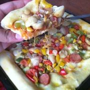 面粉、马里拉苏奶酪、鸡肉丸、韩式烤肉、彩椒、洋葱、西红柿、黄油、酵母、盐、糖、番茄沙司、罗勒叶。