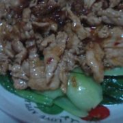 瘦肉、小油菜、盐、酱油、豆瓣酱、糖、淀粉、鸡。