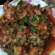 大虾子、花椒、干指天椒切段、大蒜籽切碎、生抽、豆瓣酱、料酒。