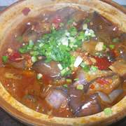 茄子、菜仔油、鸡精、盐、郫县豆瓣、葱、姜末、蒜末。
