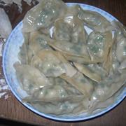 饺子皮、猪肉馅、鸡蛋、韭菜、花椒粉、五香粉、蒜末、姜末、盐、鸡精。