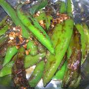 青椒、糖、蒜末、醋、生抽、鸡精、盐、油。
