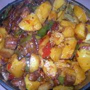土豆、五花肉、姜、蒜、豆瓣、老抽、鸡精、青椒。