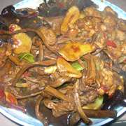 茶树菇、鸡腿、大葱、生姜、蒜、木耳、豆瓣酱、老抽、料酒。