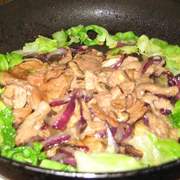 牛肉、香菇、洋葱、生菜、蒜、大喜大烤肉酱。