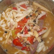 牛肉、猪肚、酸笋、蒜米、豆豉、西红柿、酱油、盐、香醋、水。