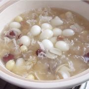 鲜莲子、鲜百合、雪耳、红枣、冰糖、鹌鹑蛋。