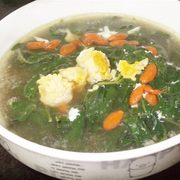 枸杞叶、咸蛋、姜片、枸杞、油、盐。