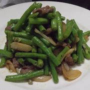 瘦肉、豆角、蒜粒、生粉、糖、生抽。