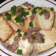 豆腐、猪肉、生抽 、盐、油、葱花、生粉、白糖。