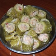 苦瓜、五花肉、咸香马交鱼、葱头、生粉、油、盐、生抽。