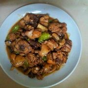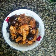 三黄鸡、香菇、大蒜、姜、干辣椒、八角、花椒。