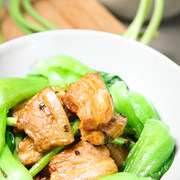 去皮五花肉、小塘菜、葱花、蒜苗、李锦记天成一味、食用油。