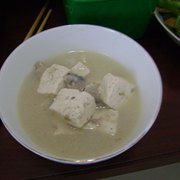 鲅鱼头、鱼骨、豆腐、葱姜、白酒、盐、白胡椒粉、水。