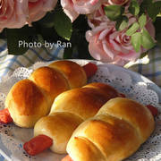 高筋面粉、水、蛋液、酵母粉、盐、糖、奶粉、黄油、火腿肠。
