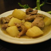 鸡块、土豆、洋葱、椰奶浆、牛奶、青咖喱。