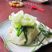 白菜叶、鸡肉、香菇、生姜、葱头、生抽、盐、油。