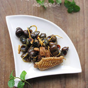 新鲜石螺、鸡肉、紫苏、薄荷、生抽、蒜瓣、油、盐、姜丝。