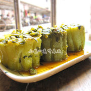 苦瓜、油豆泡、韭菜、葱、盐、花生油、生抽、玉米淀粉。