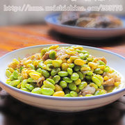 黄豆青、猪肉、生抽、盐、蒜瓣、花生油。