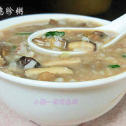 鸡胗、干香菇、白粥、香葱、生姜、生抽、盐、花生油。
