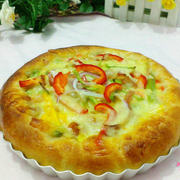 高筋粉、鲜虾仁、培根肉、圆蘑、青椒、红甜椒、黄甜椒、洋葱、青豆、玉米粒、胡萝卜、黄油、干酵母、糖粉、番茄沙司。