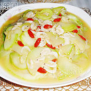 西葫芦、虾皮、枸杞、精盐、鸡精、水淀粉、花生油。