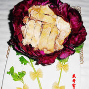 三黄鸡、紫甘蓝、香芹、公鸡蝴蝶形意大利面、沙茶酱、姜片、八角、食用盐、精盐。