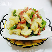 甜椒、花椰菜、火腿、大葱、姜、蒜、生抽、精盐、鸡精、食用油。