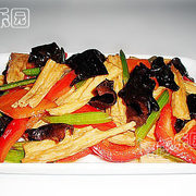 芹菜、腐竹、胡萝卜、黑木耳、红柿子椒、蚝油、姜、淀粉、胡椒粉、香油、料酒、生抽、鸡精、精盐、食用油。