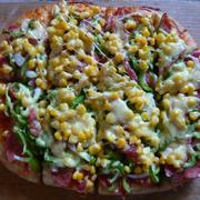面粉、发酵粉、盐、糖、奶、马苏里拉芝士、青椒、洋葱、火腿、腊肠、玉米粒、食用油、黑胡椒粉。