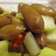 花生米、水芹菜、五香面、盐、花椒、大料、糖、淡色酱油、辣椒油。
