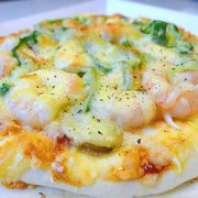 高筋粉、固体奶油、砂糖、奶粉、盐、水、酵母、比萨酱、皮萨专用奶酪、洋葱、圆菇、青椒、海虾。