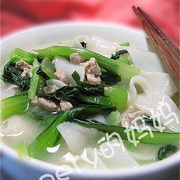 牛肉丝、青菜、饺子皮、油、盐、鸡精、葱、姜、酒、开水。