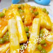年糕 、洋葱、青豆 、盐半、番茄酱、黄油、黑胡椒、开水。