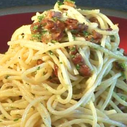 意大利面条、橄榄油、培根、鸡蛋黄、帕玛森乳酪、奶油、盐、胡椒、欧芹。