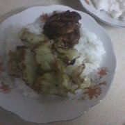 鸡腿、黑胡椒粉、姜粉、料酒、酱油、蜂蜜、蚝油、盐、鸡精、米饭、酱爆圆白菜。