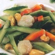 黄瓜、腰果、虾仁、胡萝卜、葱花、精盐、味精、色拉油。