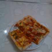 高筋面粉、鸡蛋、牛奶、酵母、玉米、豌豆、火腿、洋葱。